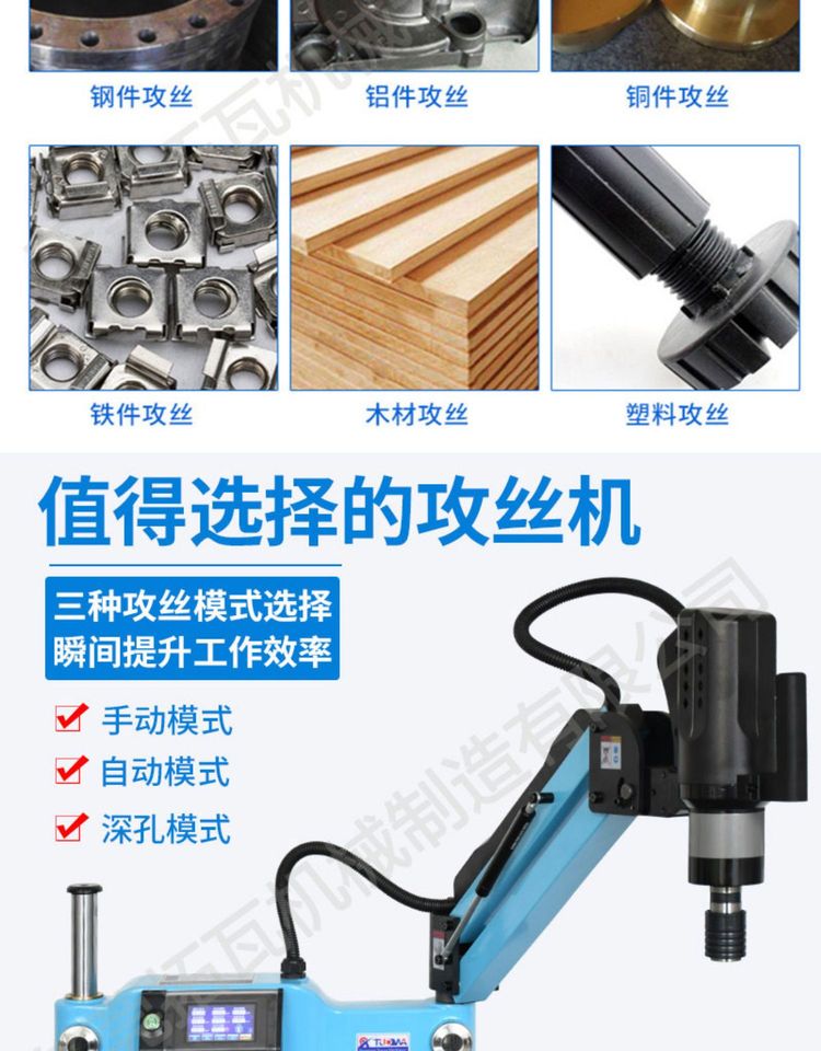 智能伺服电动攻丝机M3-M16数控万向垂直摇臂小型全自动高速攻牙机